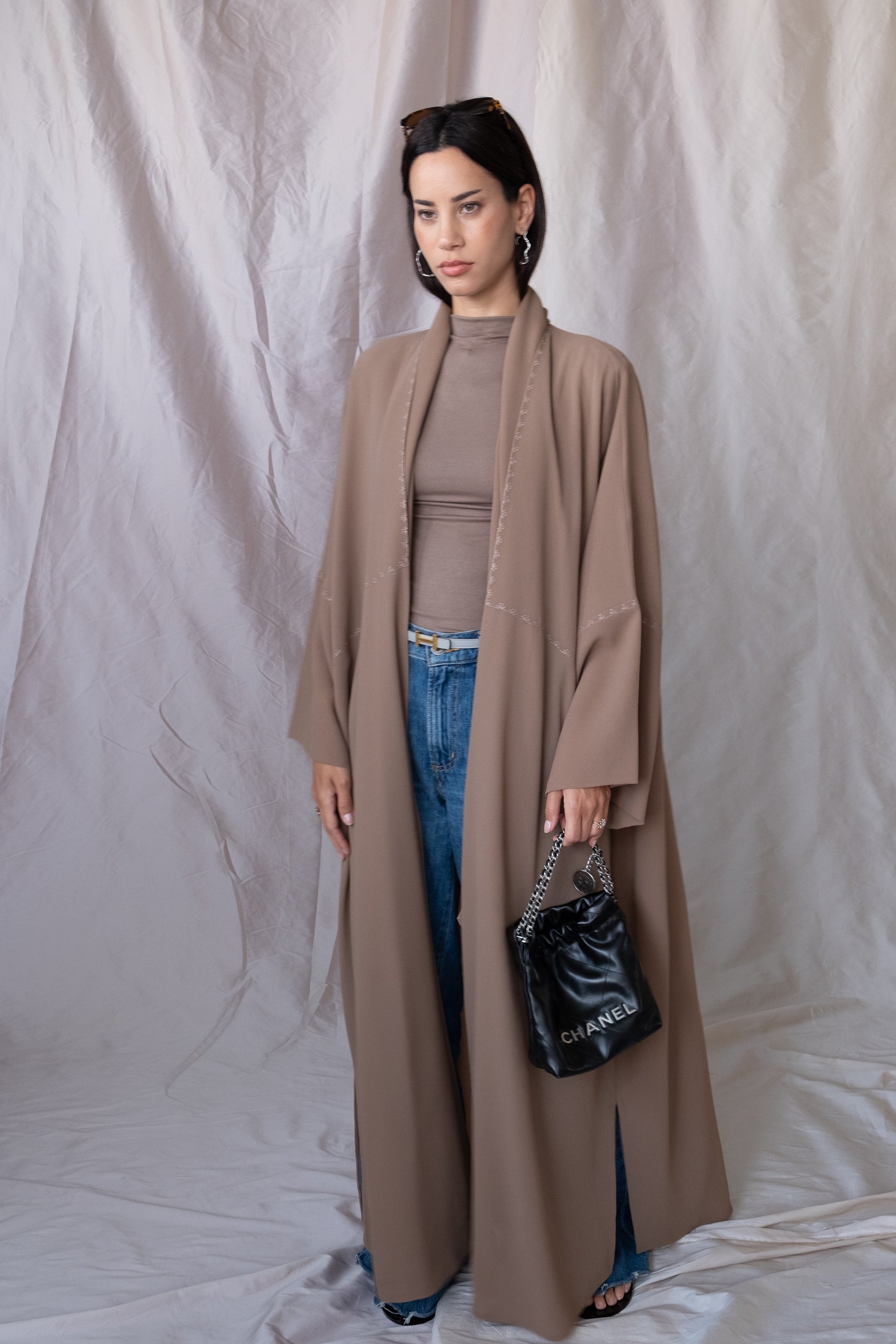 the flower stitch abaya - tan