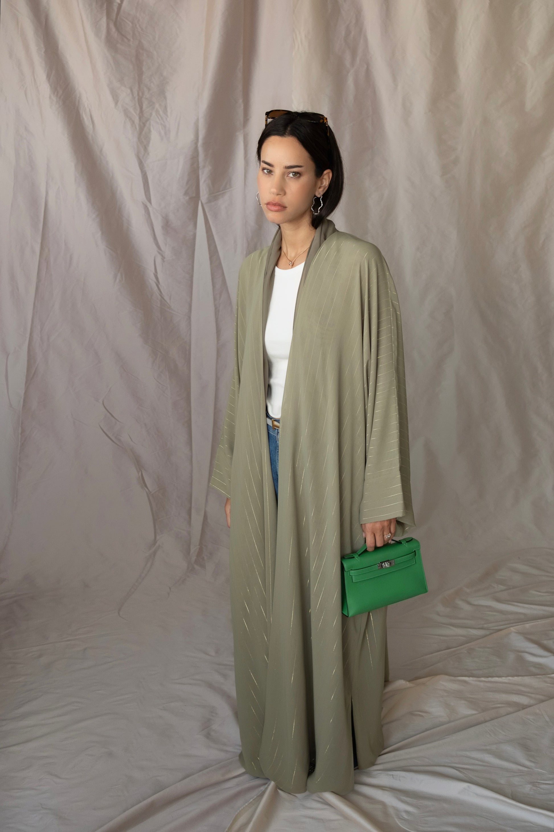 the metallic lines abaya - pistachio icecream
